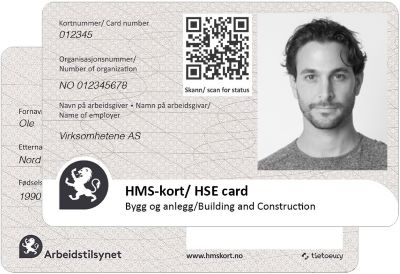 • HMS-kortet viser navn og bilde av arbeidstakeren, og navnet på virksomheten.